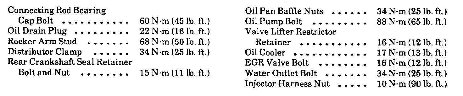Torque Specifications: