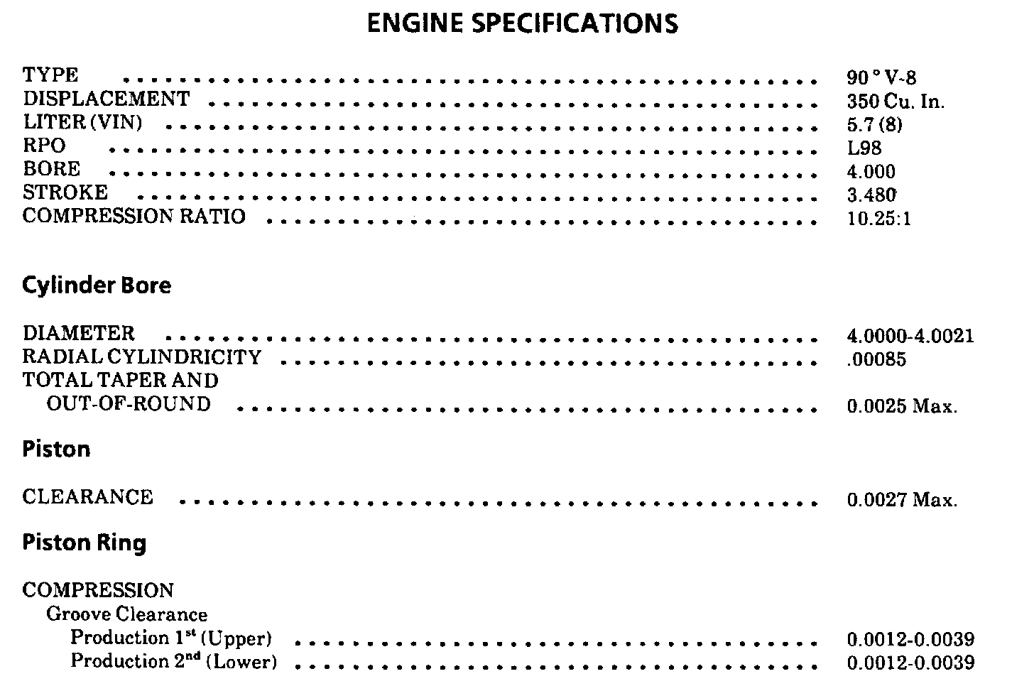 Engine Specifications: