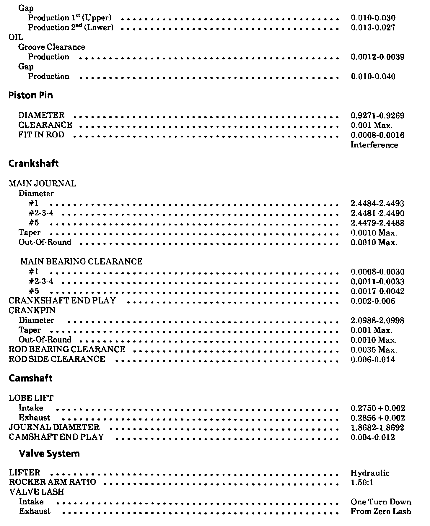 Continued Engine Specifications: