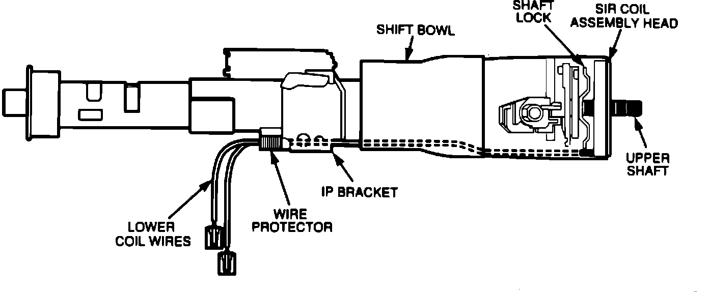 Begin this procedure with lower SIR coil wires routed through the column shift bowl exiting the I.P bracket on the jacket assembly (wire protector removed) with the coil head hanging freely from the top of the column (See Figure 2).