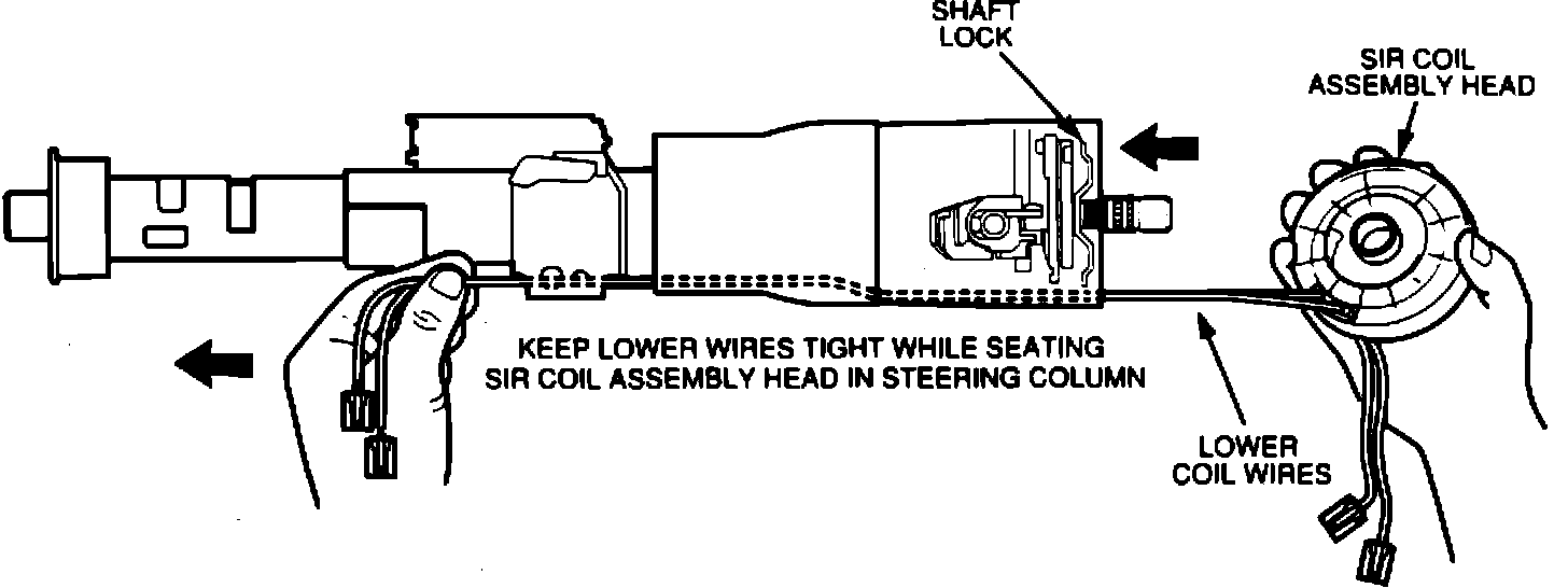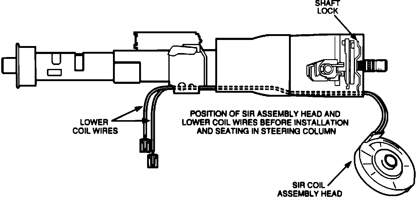 The purpose of the following procedure is to eliminate slack in the lower SIR coil wires and avoid kinking of these wires in the shaft lock area. Proper installation and seating of the SIR coil assembly prevents the lower coil wires from being cut.
