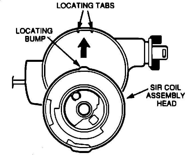 7. Align the SIR coil "locating bump" between the two tabs in the steering column cover (See Figure 4).