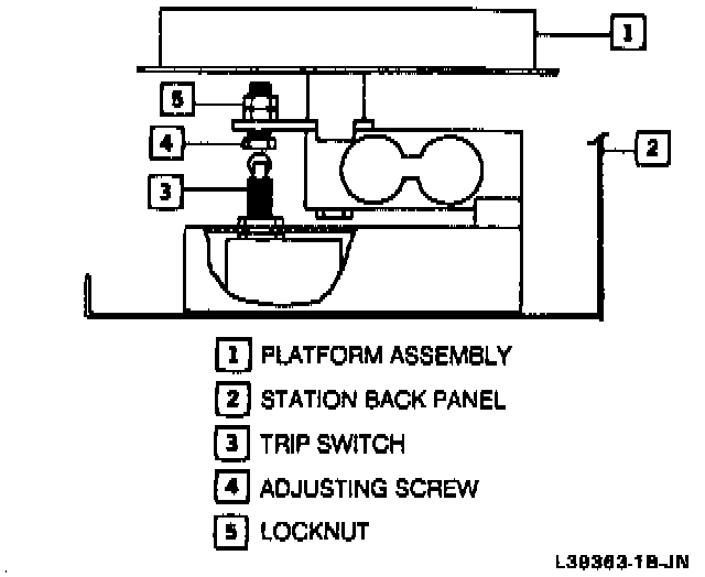 4. To check, replace the 45 lb. weight on the platform and repeat step No. 2. Repeat step No. 3 as required. Tighten lock nut of the trip screw when recalibration is complete.