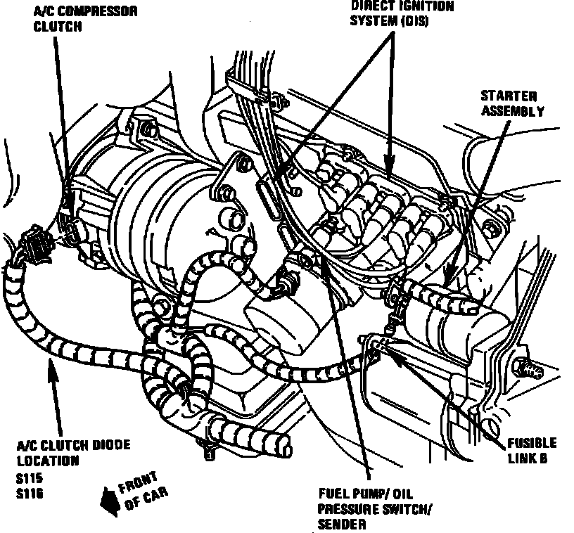 In Engine Harness, Near A/C Compressor Clutch Connector