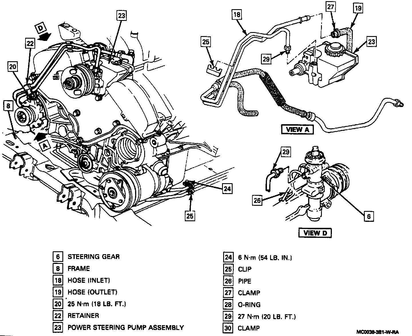 3. Inlet and outlet lines to power steering gear.