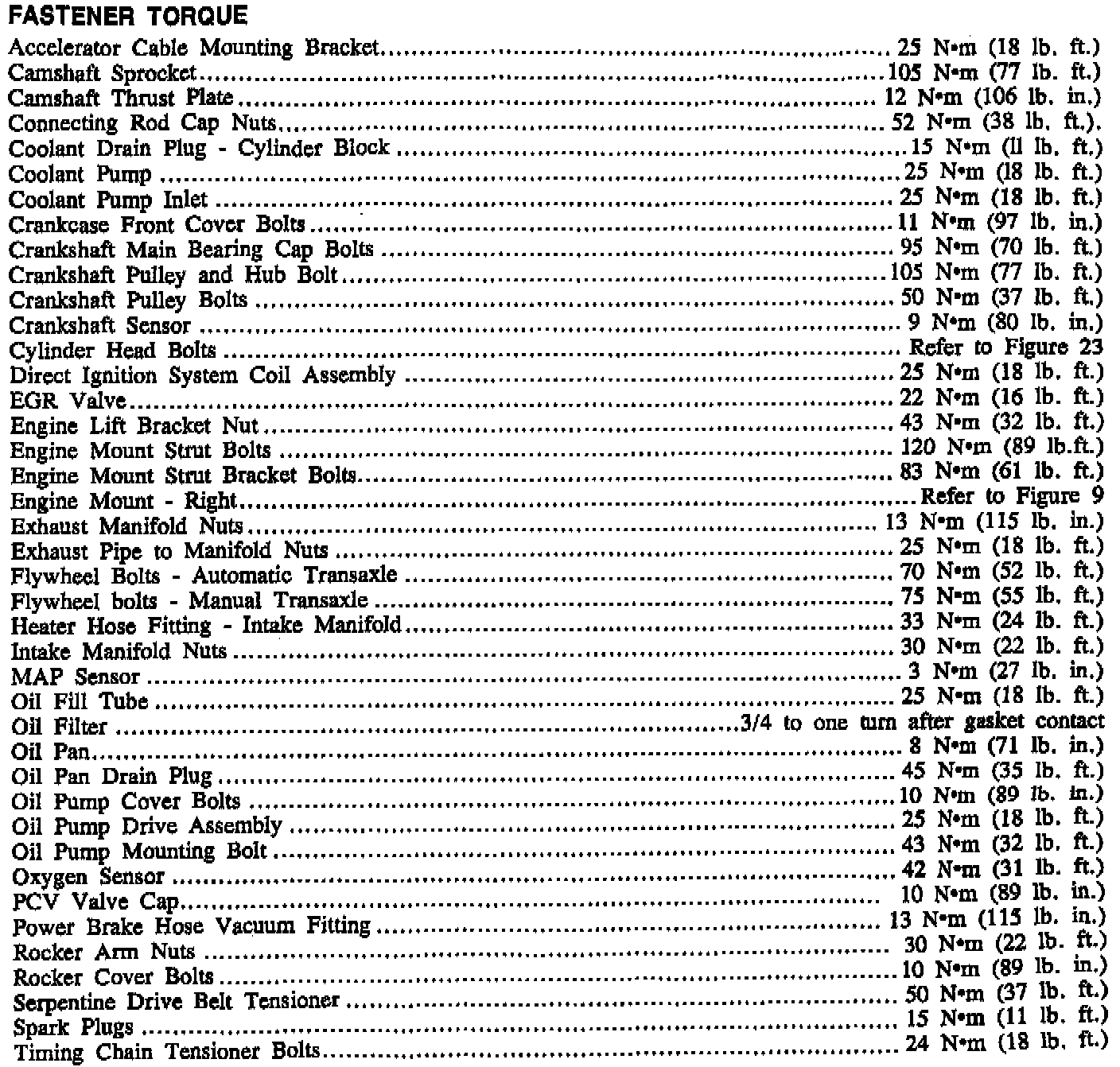 Torque Specifications: