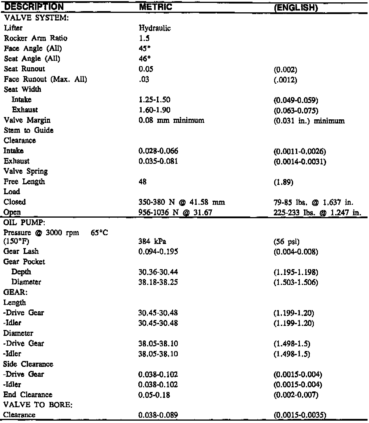 Engine Specifications:
