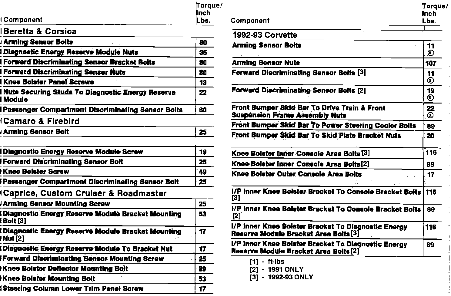 Tightening Specifications: