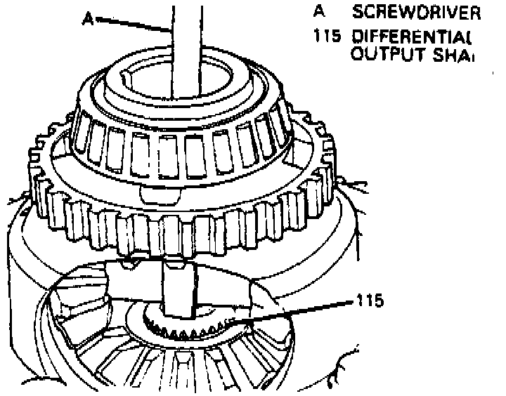 c. Remove differential output shaft (115).