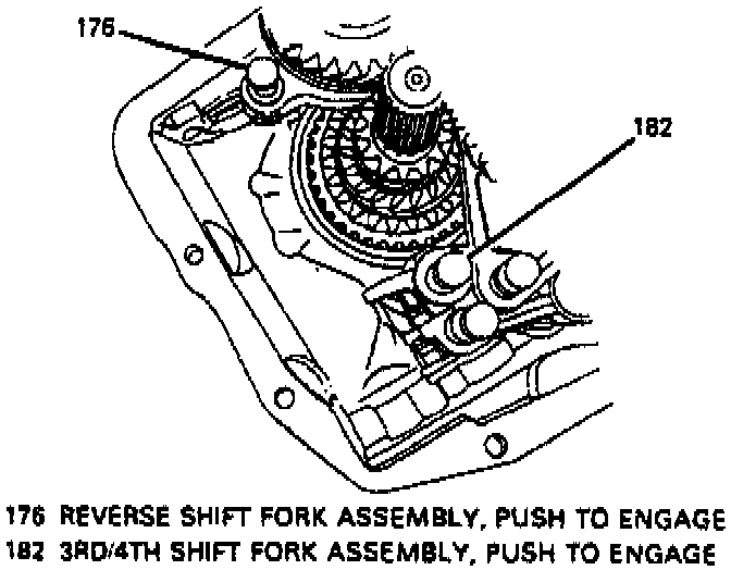 2. Remove shift rail detent holder cover (173) by puncturing middle of cover and prying off with roll type pry bar.