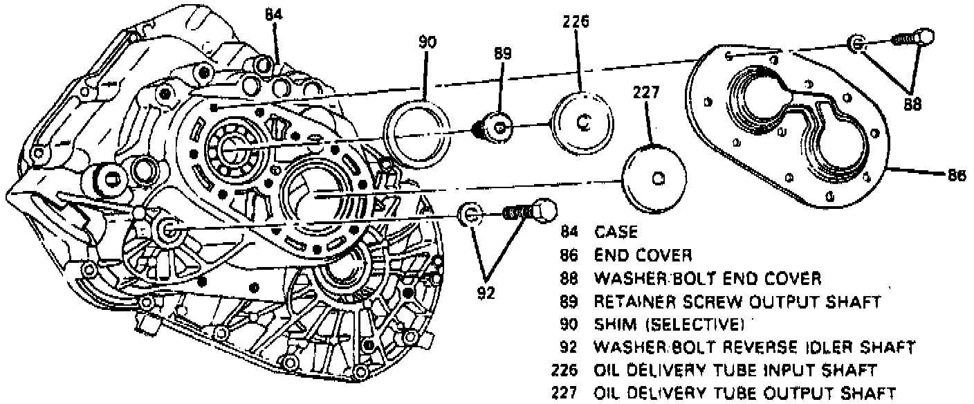 a. Remove end cover bolts (91) and cover (90), then the bearing oil delivery tubes (226 and 227).