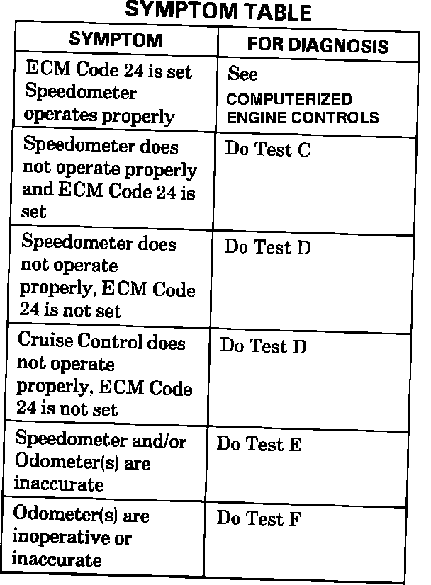 - Symptom Chart - Speed Sensor