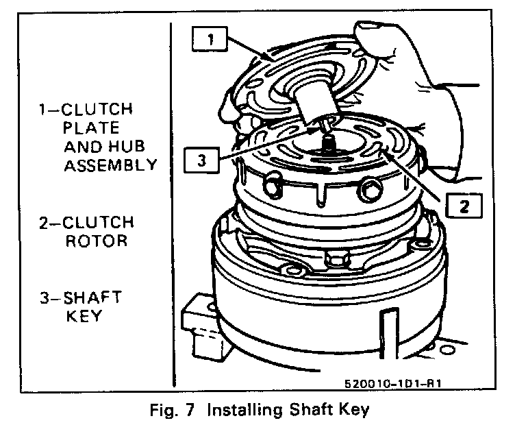 3. Align the shaft key with the shaft keyway and place the Clutch Plate and Hub assembly Onto the compressor shaft.