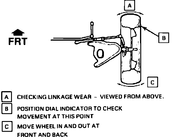 3. Move wheel in and out at front and rear, without moving steering wheel, while observing gauge.