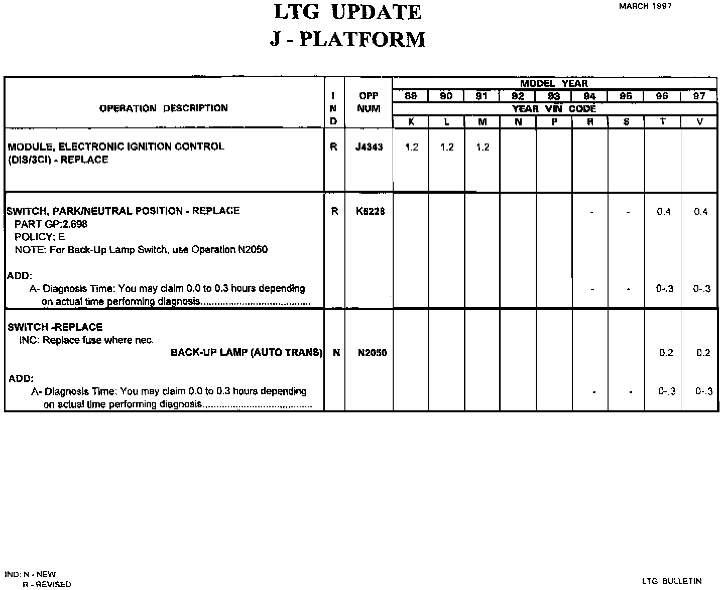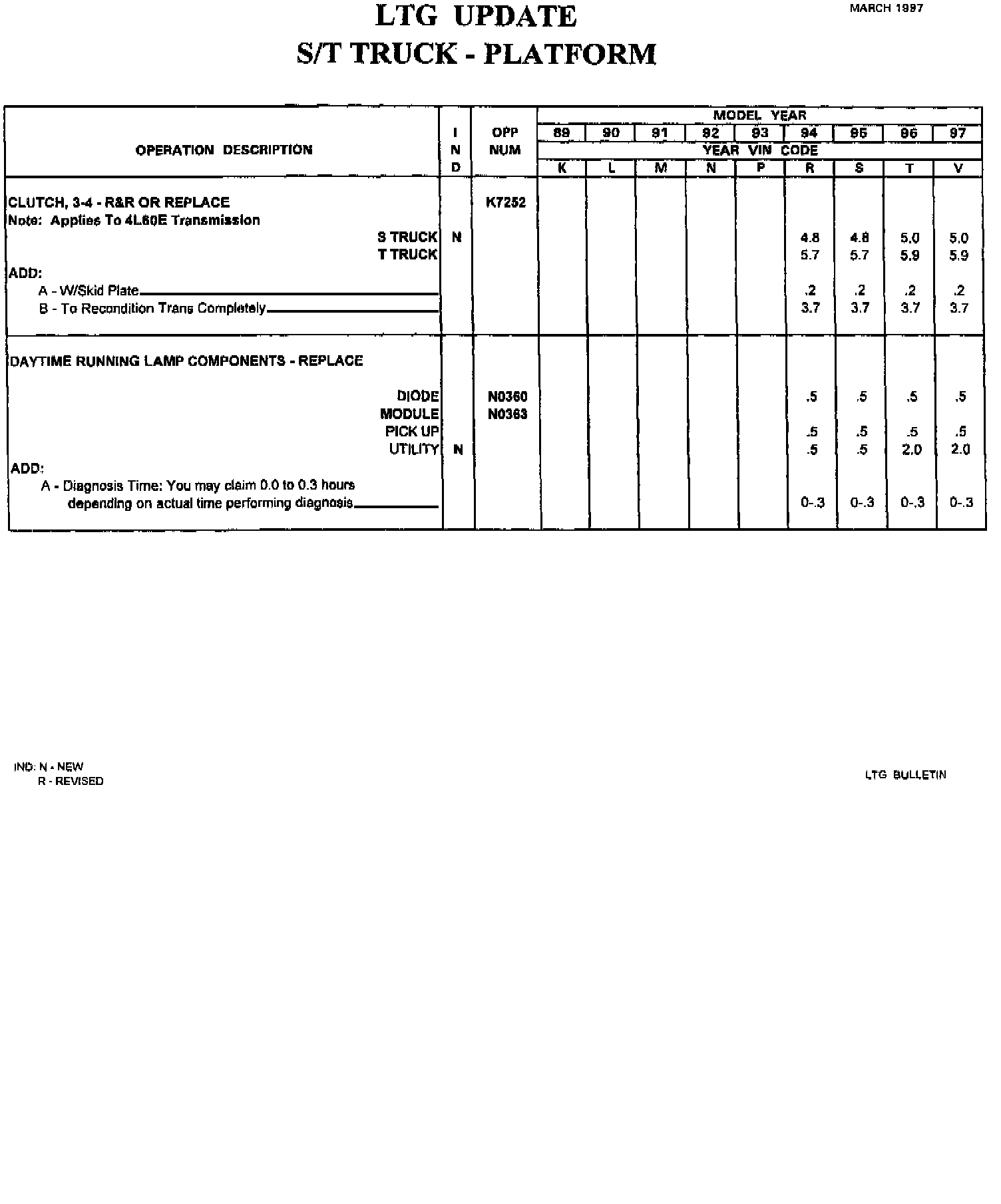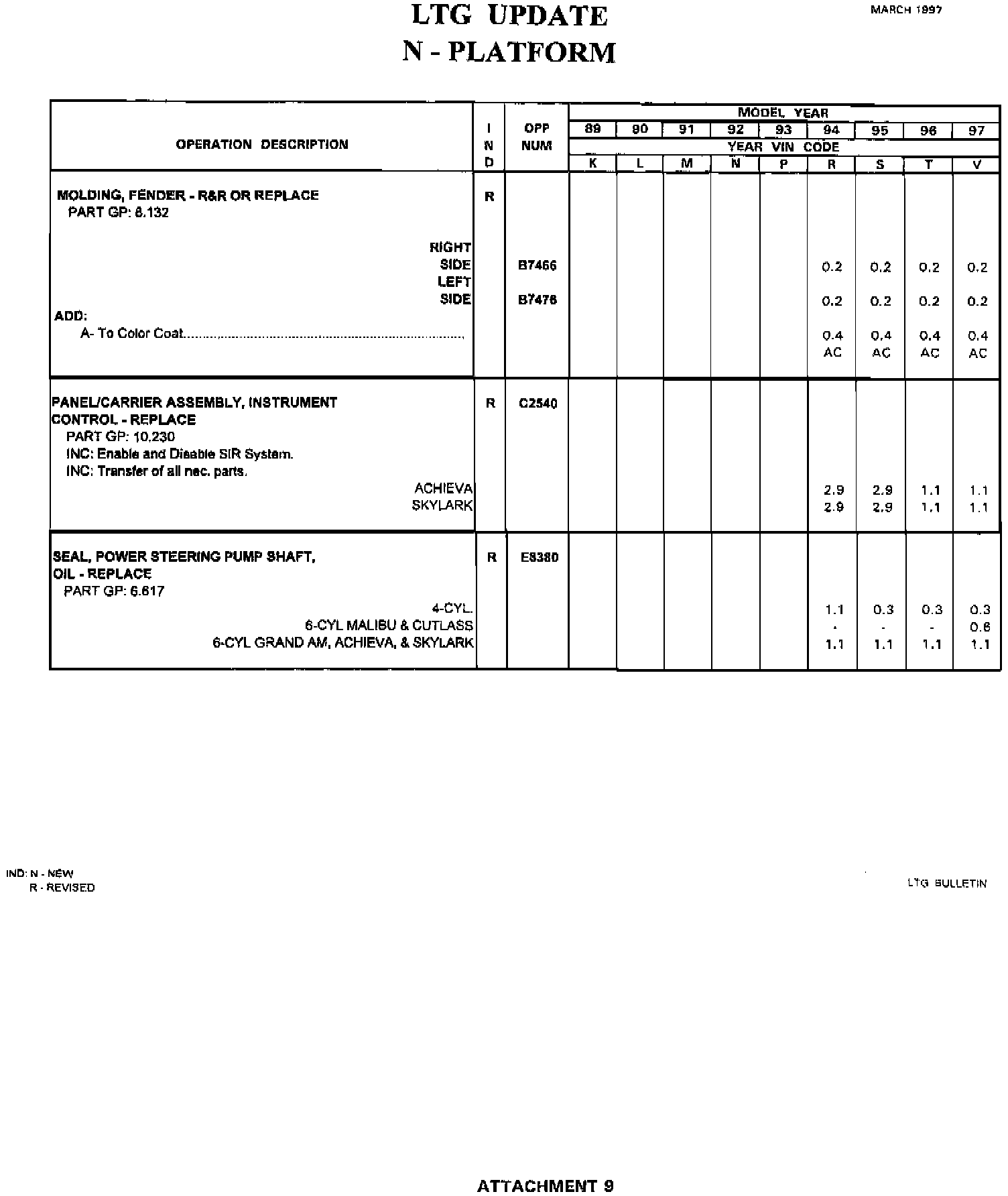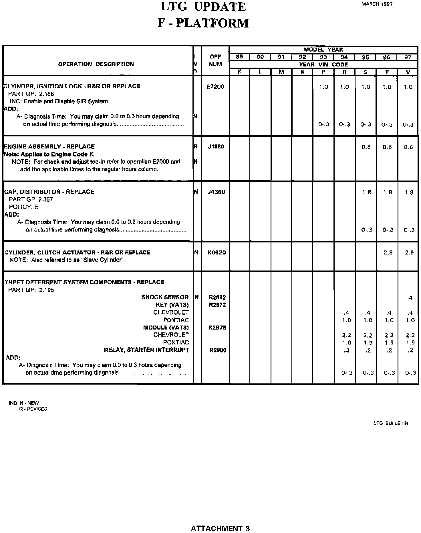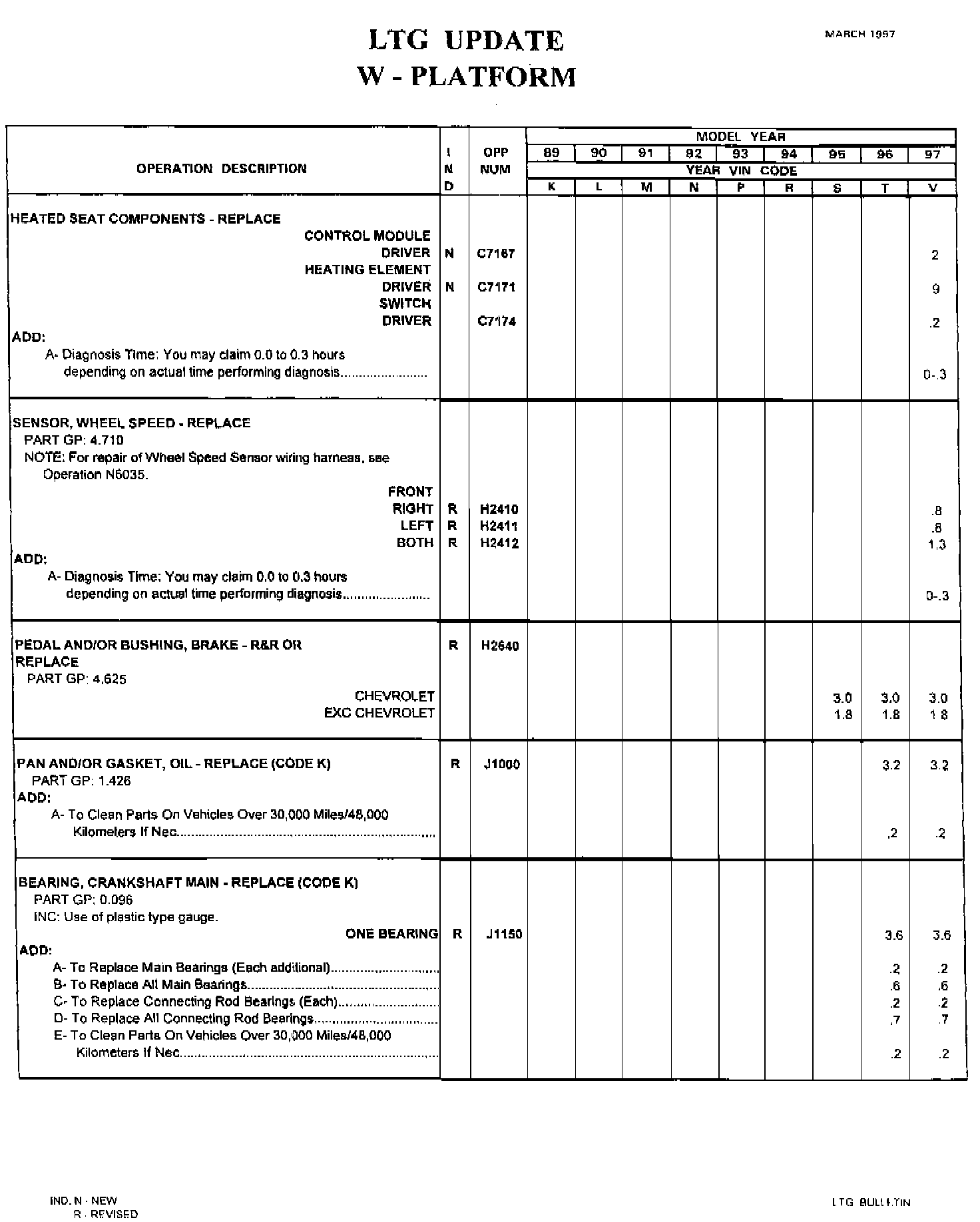 This bulletin addresses changes to the published General Motors Labor Time Guides. These changes (new or revised) are the result of new time studies and dealer "Requests for Review" being handled by the Service Technology Group. They are effective upon receipt. All changes will appear in the next printing of the Labor Time Guide.