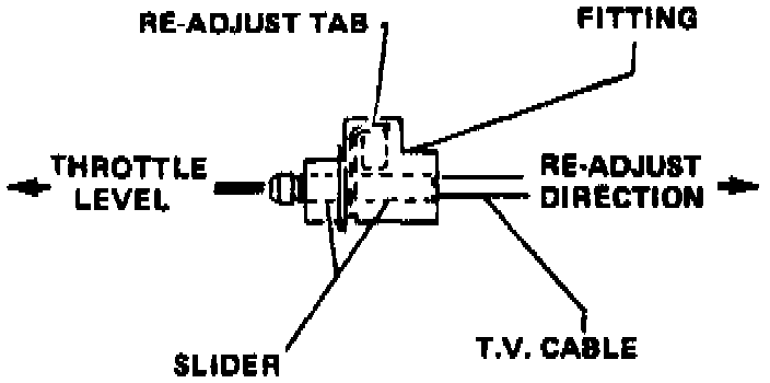 1. Stop engine.2. Depress and hold down readjust tab, move slider through fitting, away from lever assembly, until slider stops against fitting.