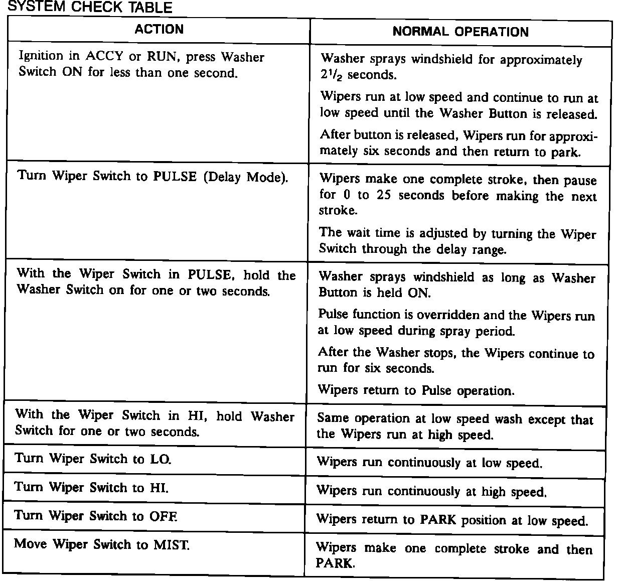 Use the System Check Table as a guide to normal operation.