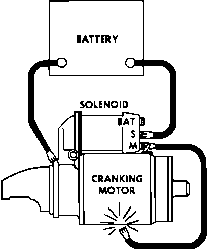 Pinion clearance should be checked after the motor has been disassembled and reassembled. To check, disconnect motor field coil connector from solenoid terminal and insulate end. Connect one battery lead to solenoid switch terminal and the other lead to the solenoid frame, Fig. 4. Using a jumper lead connected to the solenoid motor terminal, momentarily flash the lead to the solenoid frame. This will shift the pinion into the cranking position until the battery is disconnected.