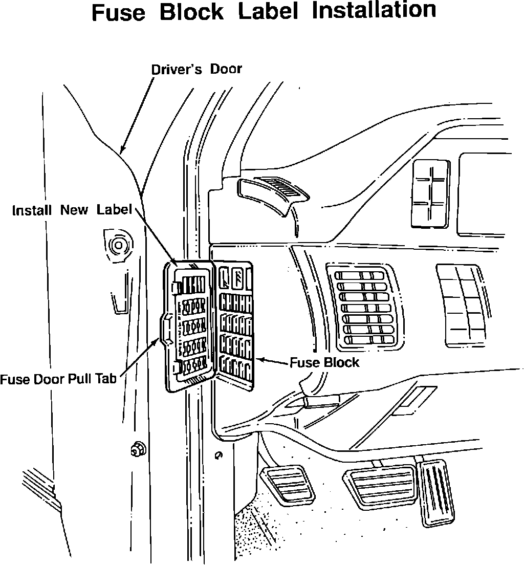 3. Carefully peel backing paper from new label and install over existing label on fuse block door.