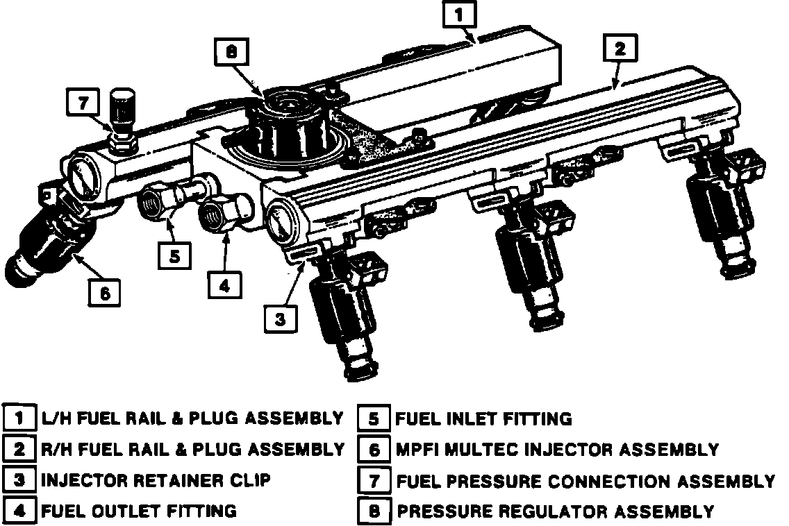 Model R620 Fuel Rail Assembly:
