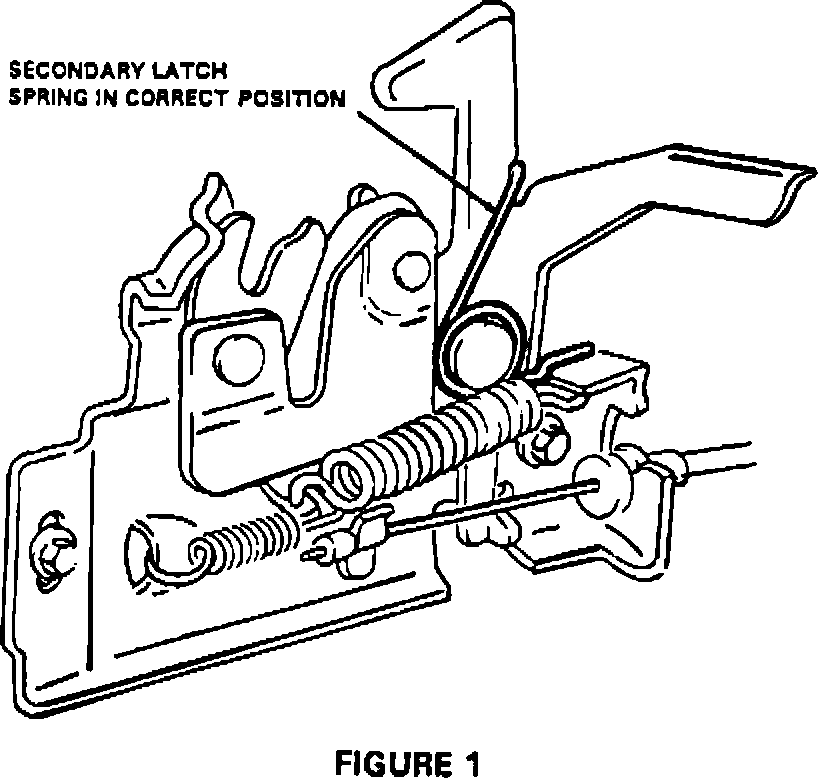 2. Inspect hood latch for proper installation of secondary hood latch spring. See Figure 1.