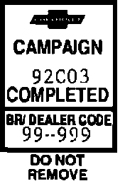 Each vehicle corrected in accordance with the instructions outlined in this Product Campaign Bulletin will require a "Campaign Identification Label." Each label provides a space to include the five (5) digit dealer code of the dealer performing the campaign service. This information may be inserted with a typewriter or a ball point pen.