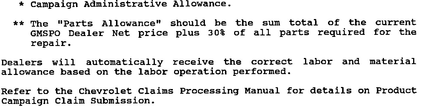A DCS message has been sent to all Chevrolet Dealers with instructions to hold all suspect vehicles until the campaign service procedure has been performed. All suspect vehicles must be held at dealers and repaired before owners take possesion of these vehicles. There will be no owner notification from Chevrolet Motor Division.