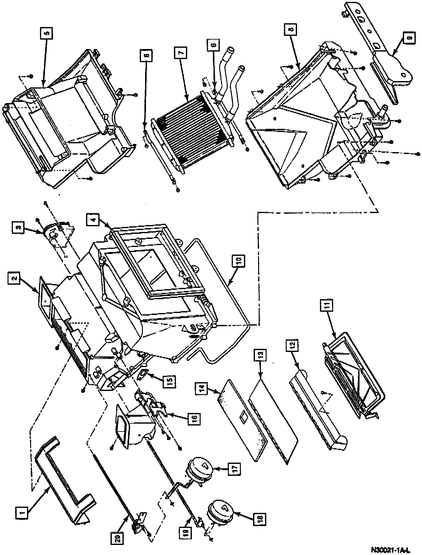 1. Heater core straps and screws, after positioning heater core.
