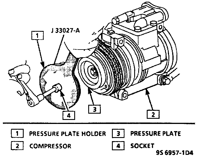 NOTICE: This procedure may be done "On-Vehicle" for VIN P engine applications. If this procedure is being performed on VIN J engine applications, the compressor must be removed.