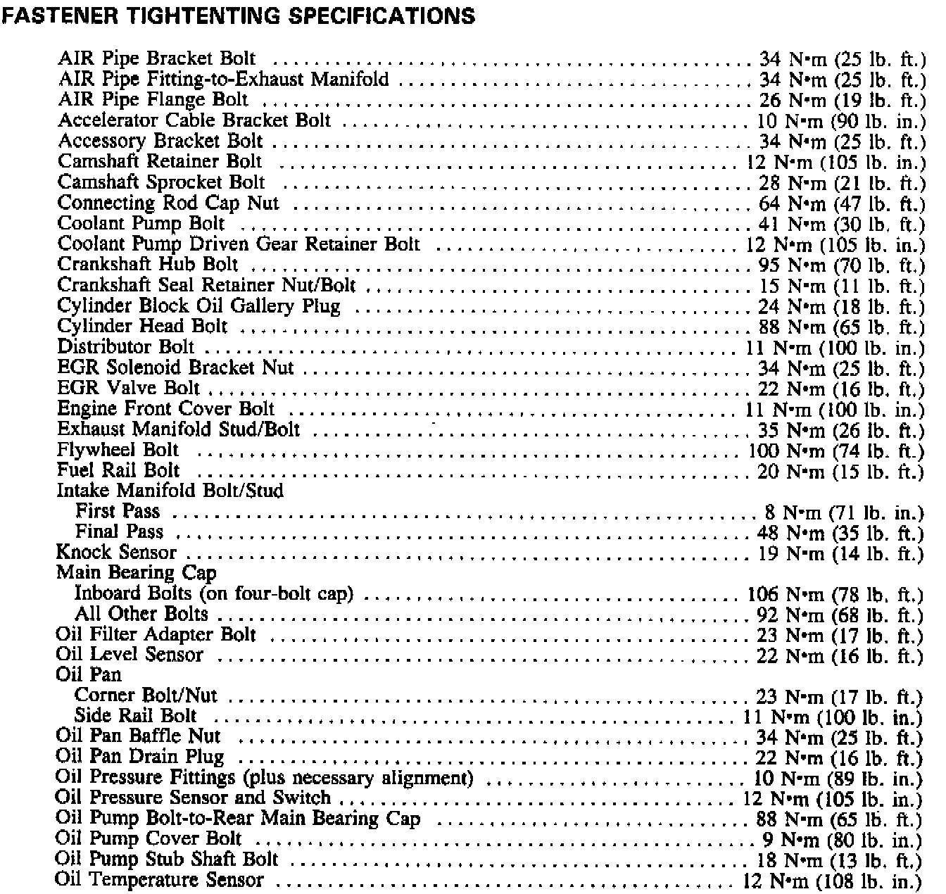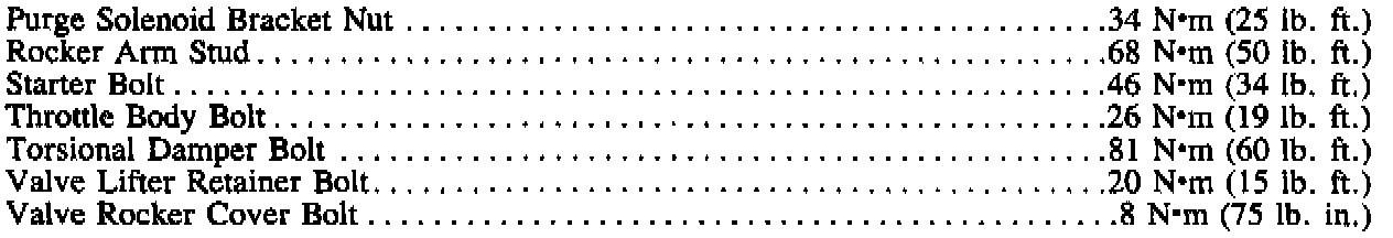 Torque Specifications (continued):