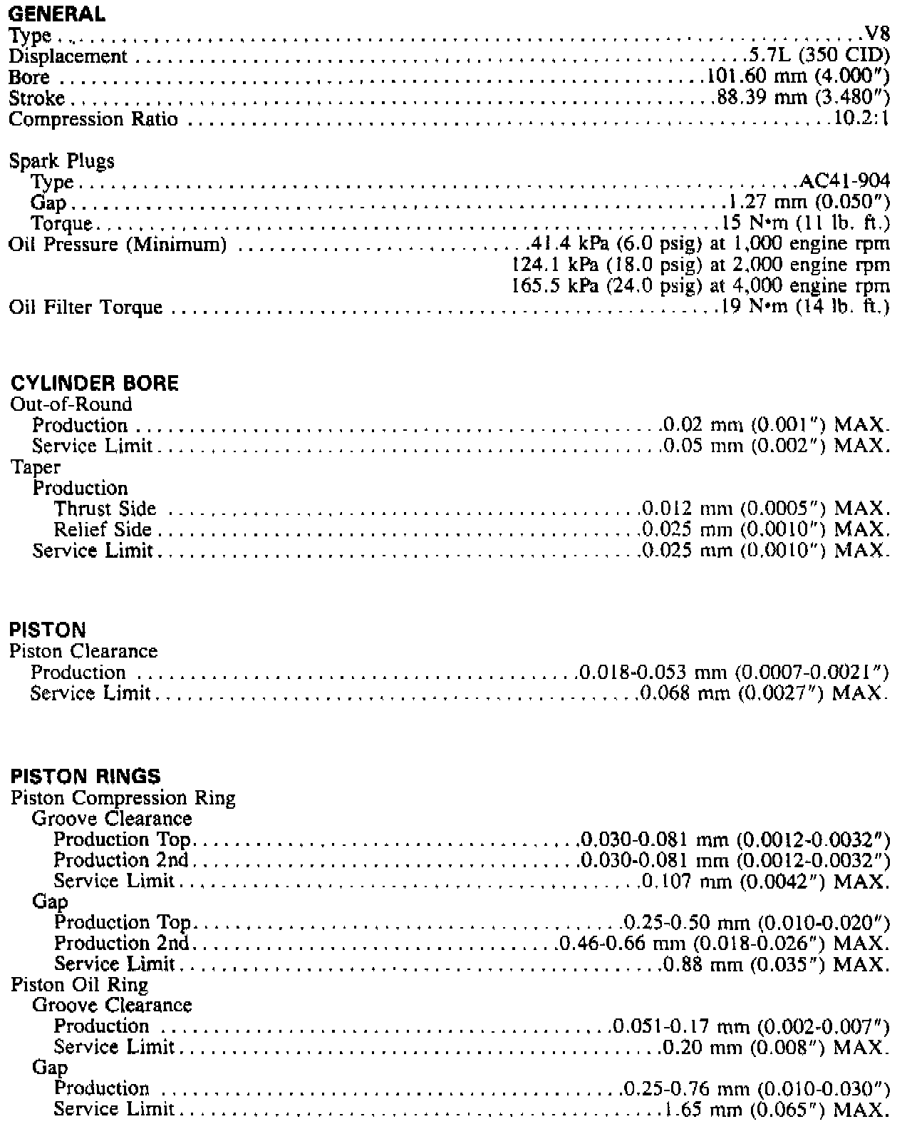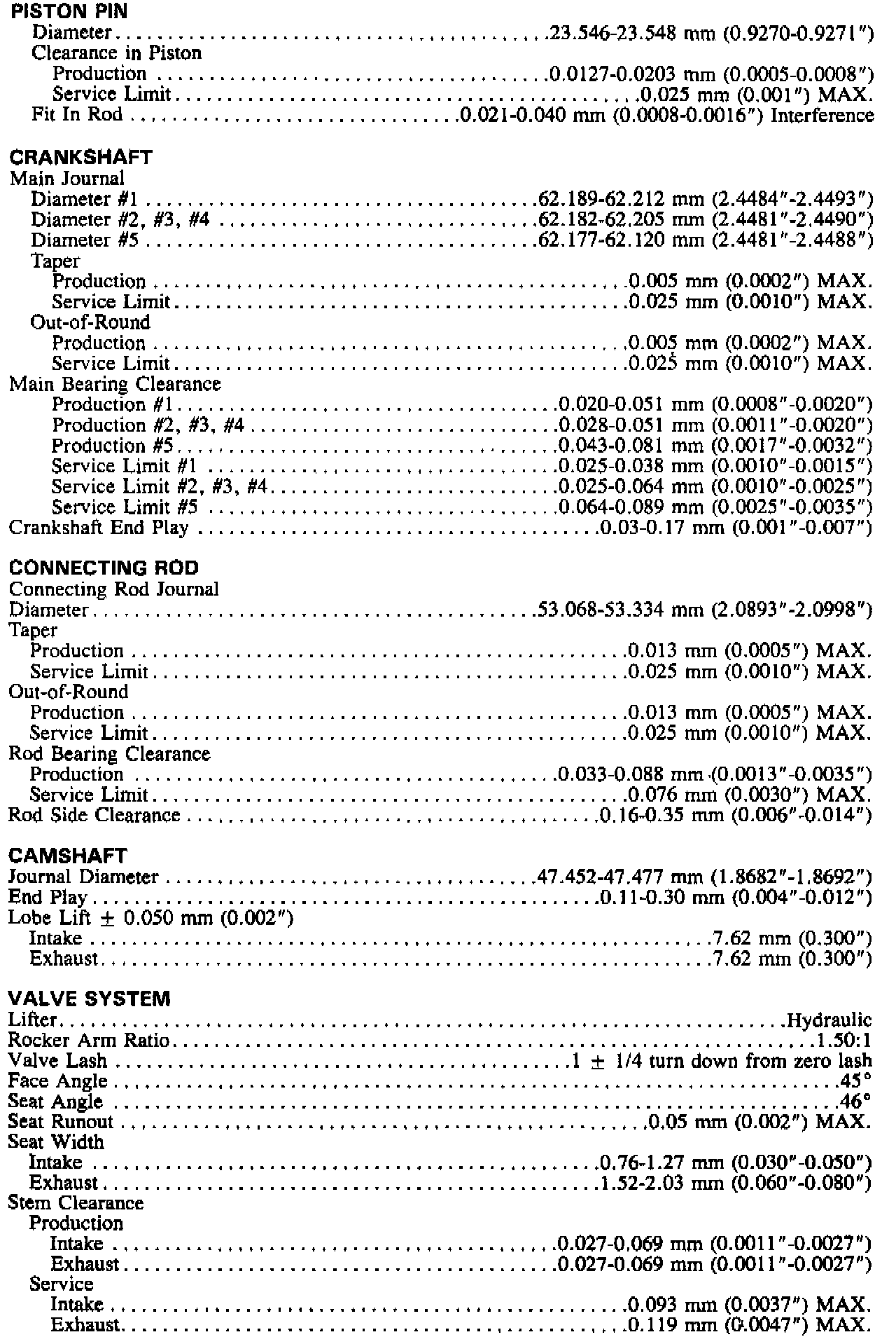 Engine Specifications (continued):