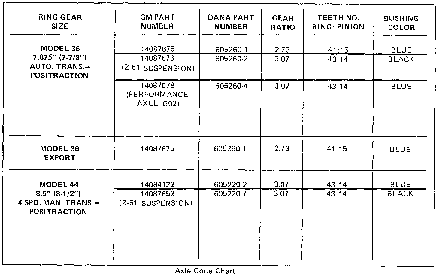 Axle Code Chart: