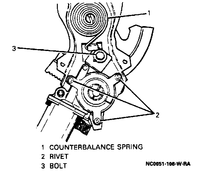 CAUTION: Step 2 must be performed once regulator is removed from door. The regulator lift arm is under tension from the counterbalance spring and can cause personal injury if the motor is removed without locking the sector gear in position.