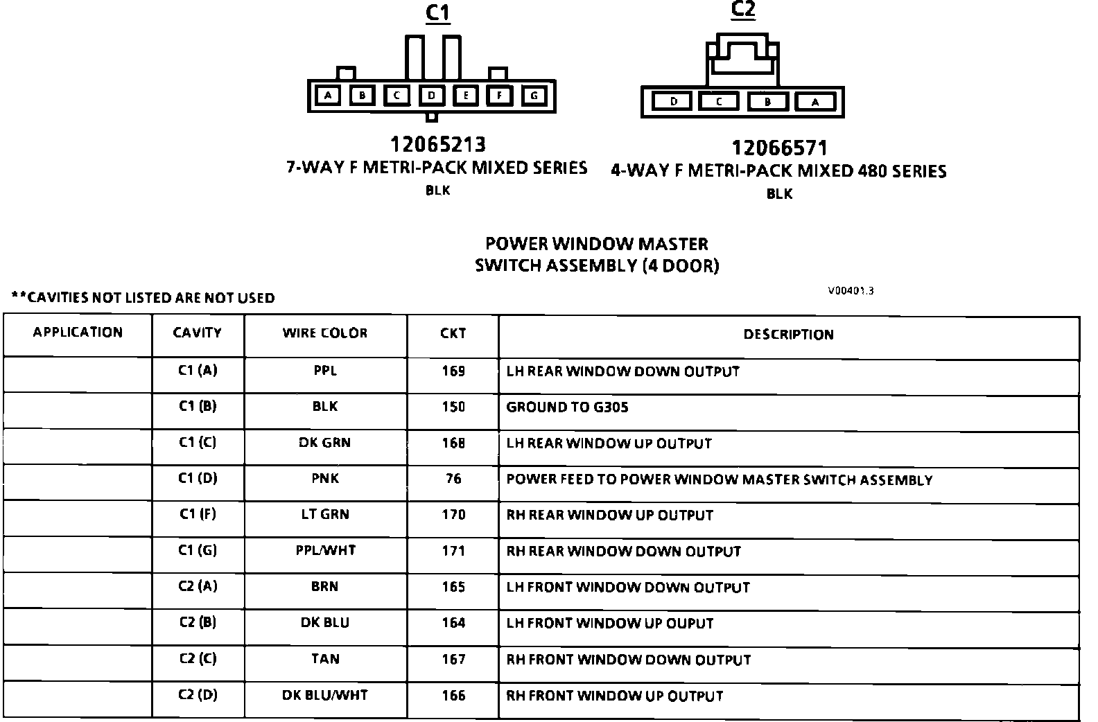 Power Window Master Switch Assembly Connector Face: