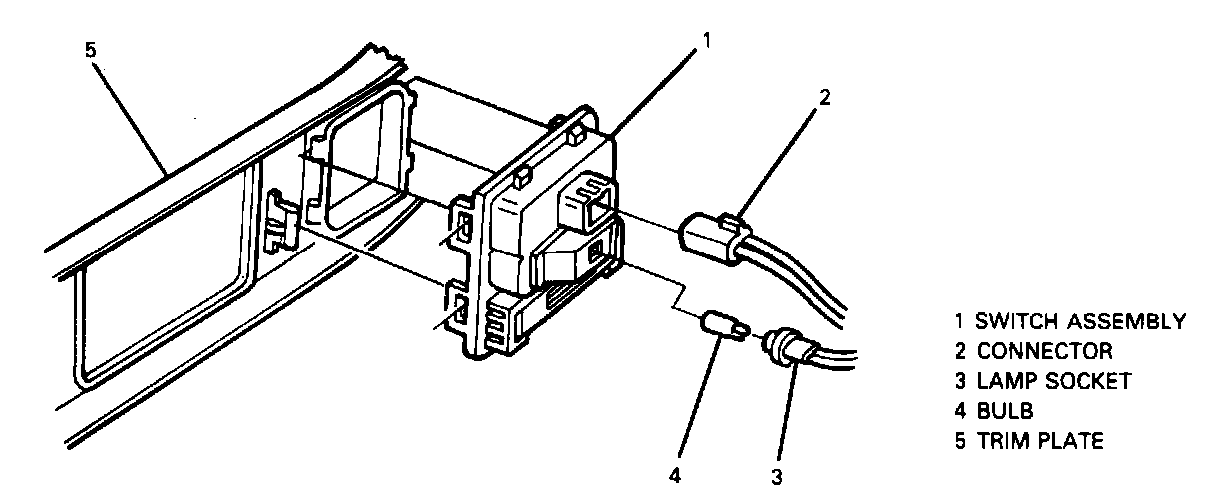 NOTICE: When removing a door trim panel or switch plate, the ignition switch must be in the OFF position. This will eliminate the possibility of shorting out the switch if a screwdriver, awl or metal object is used to remove the switch from the harness.