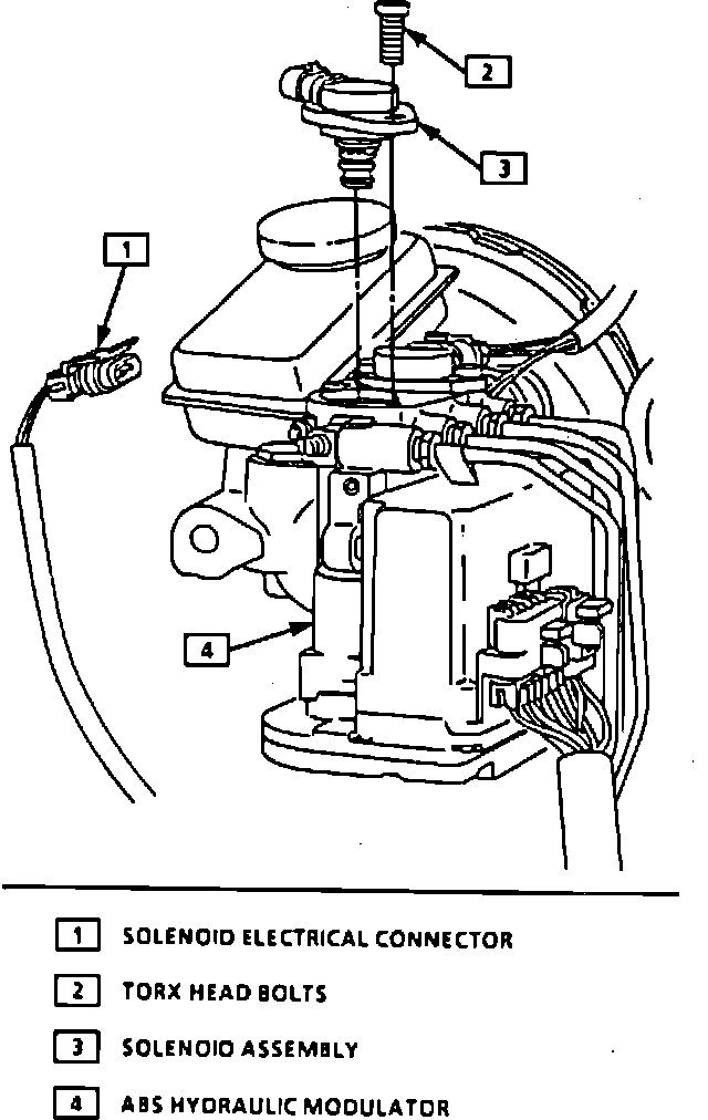 3. Remove solenoid assembly retaining bolt, then the solenoid from the modulator.
