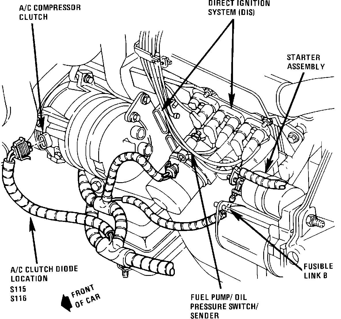 Engine harness, approx. 21 cm from A/C Compressor Clutch