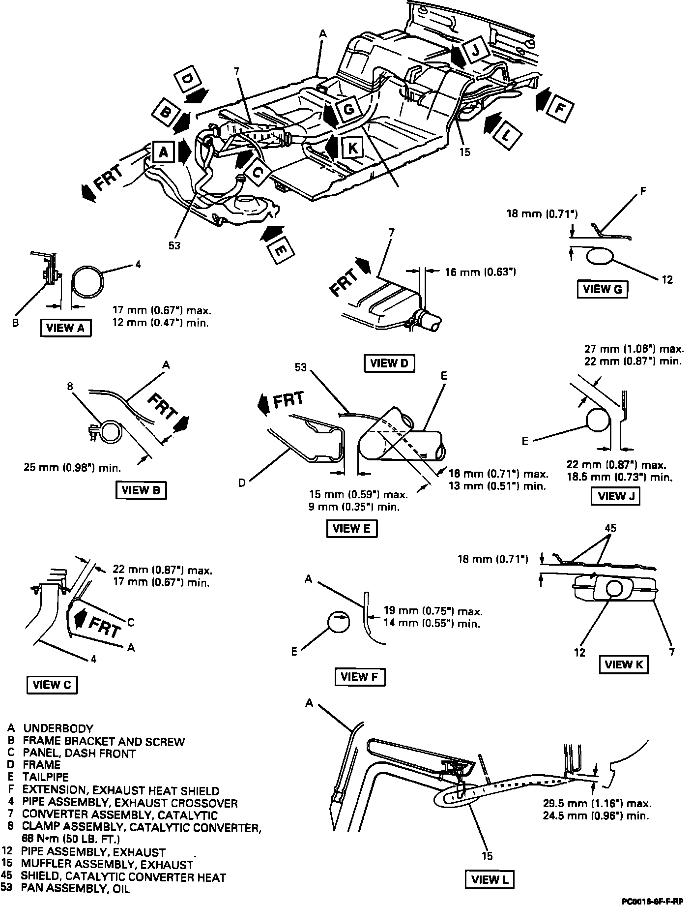 2. Remove converter clamp assembly at exhaust crossover pipe assembly