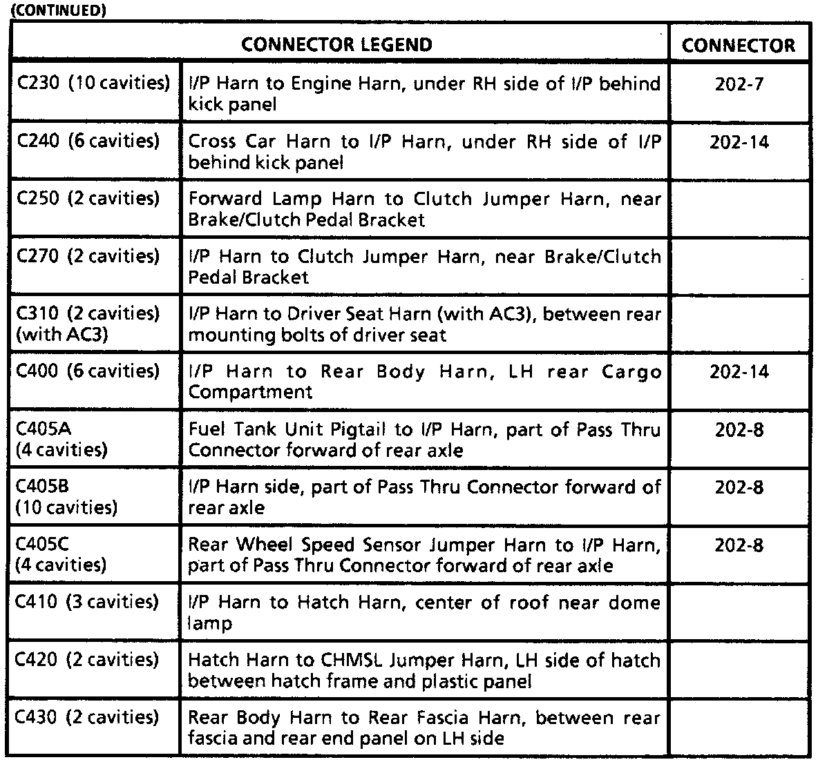 Connector Legend Cont.: