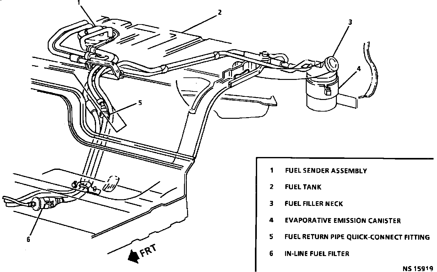 5. Connect fuel return, vapor and vent hoses and clamps at sender assembly.