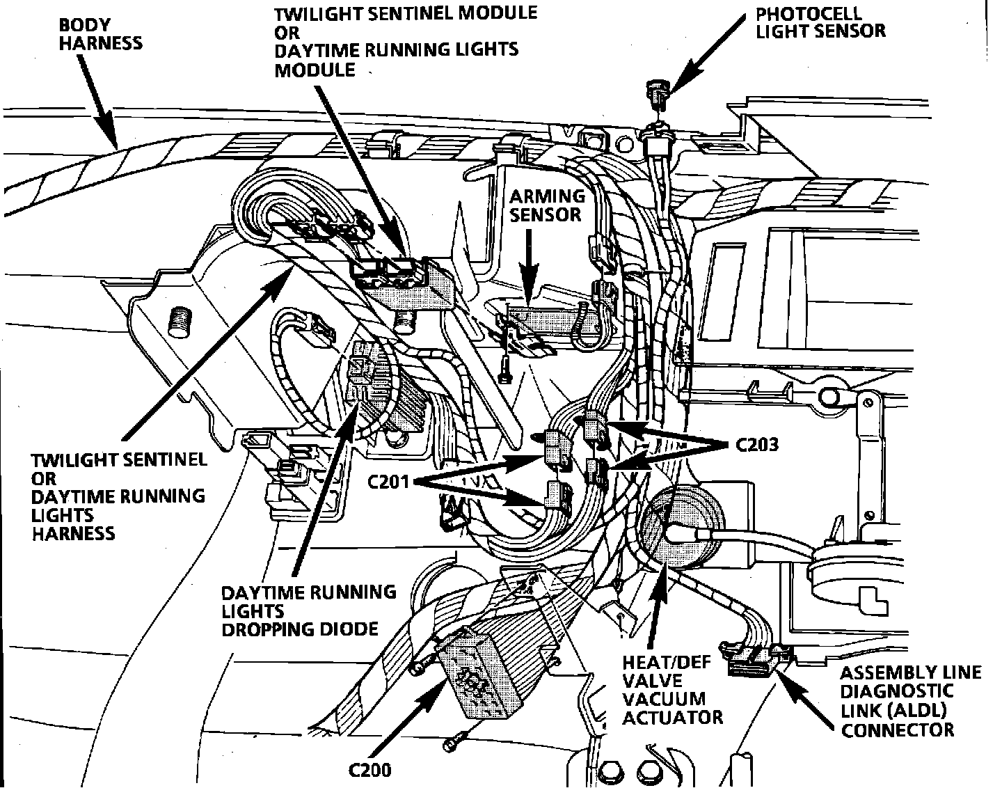 Component Location View. Center of Instrument Panel Wiring: