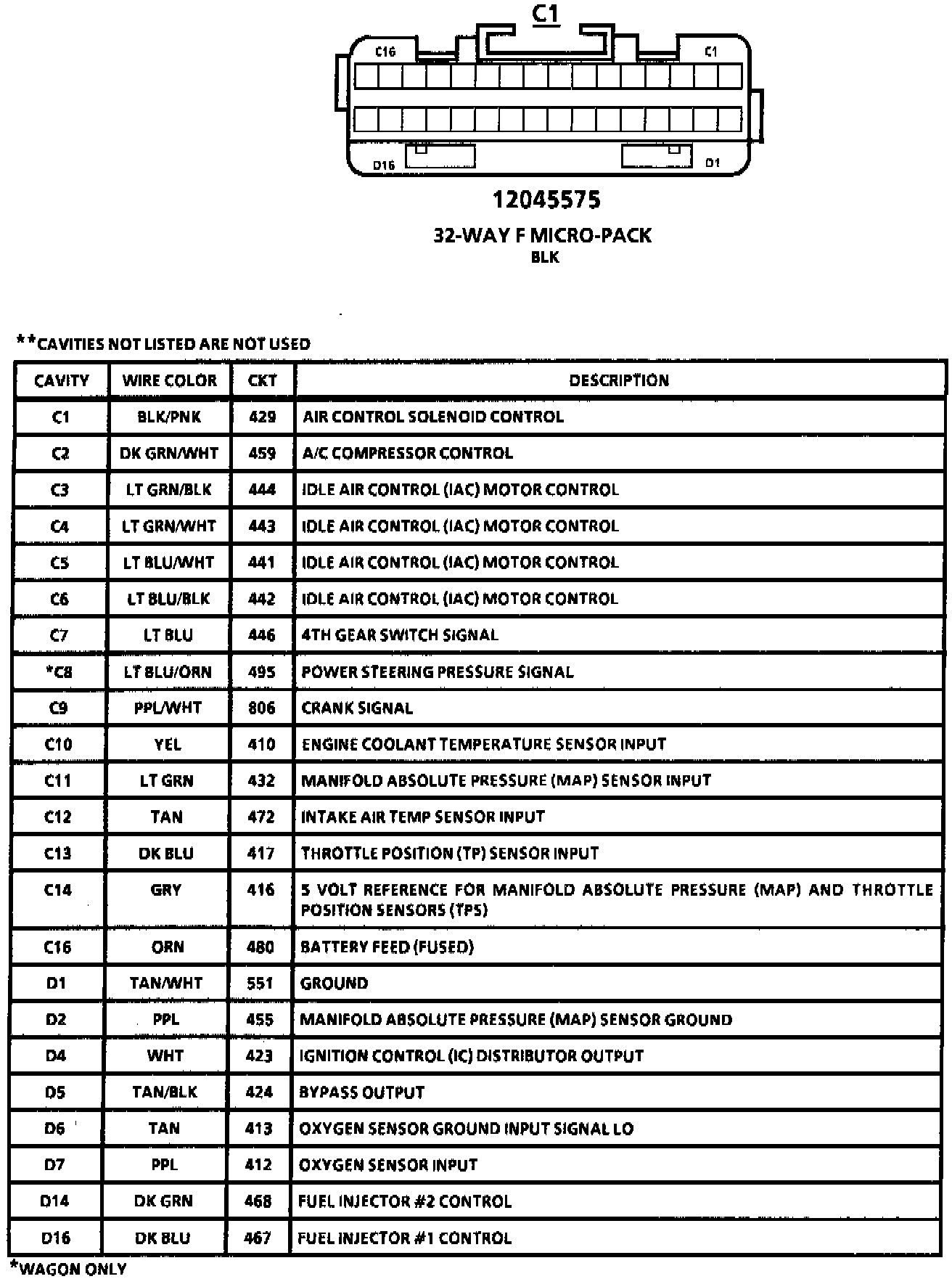 Throttle Body Injection: V8 VIN E And VIN 7 Engine Control Module (ECM) Connector Faces C1: