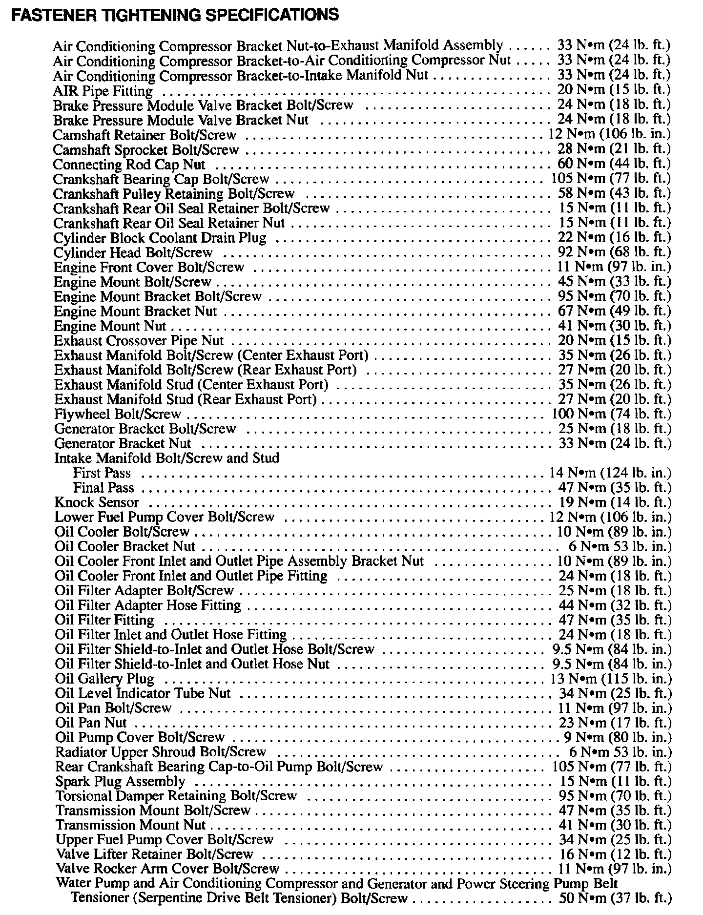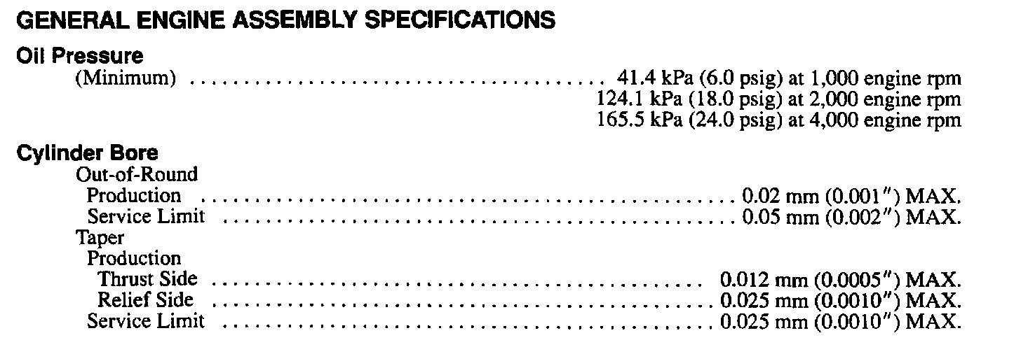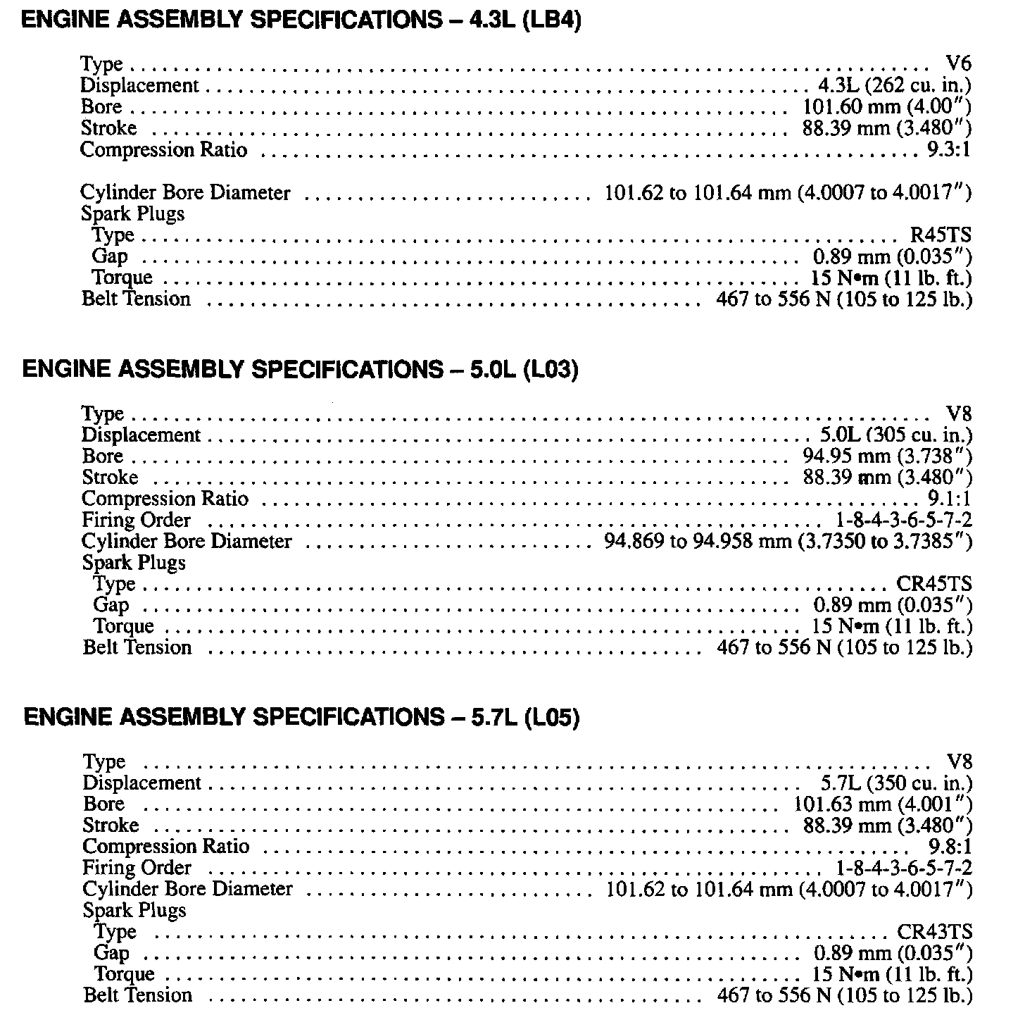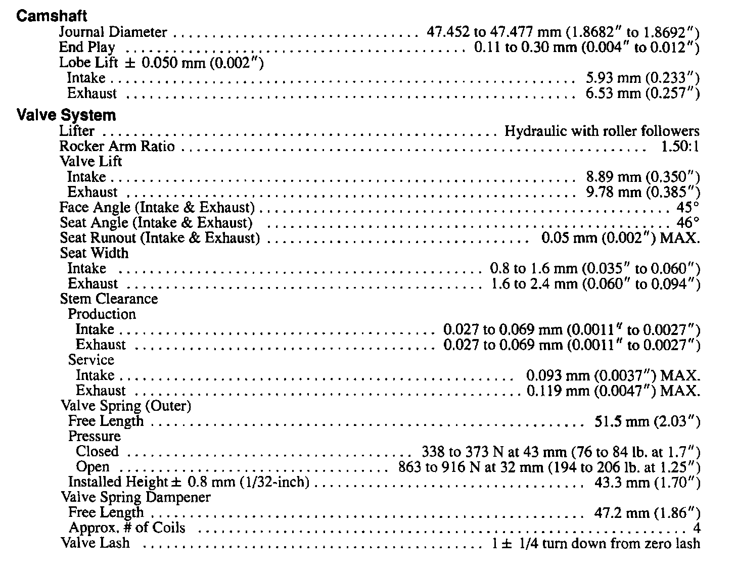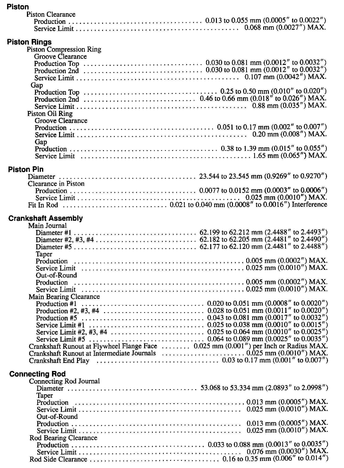 Continued Engine Specifications: