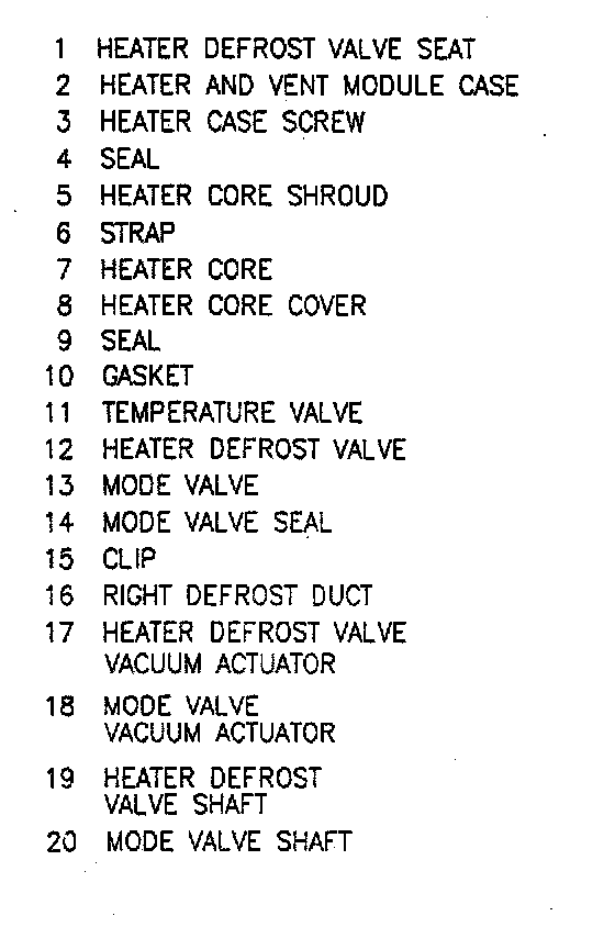 1. Heater core and heater core mounting clamps.