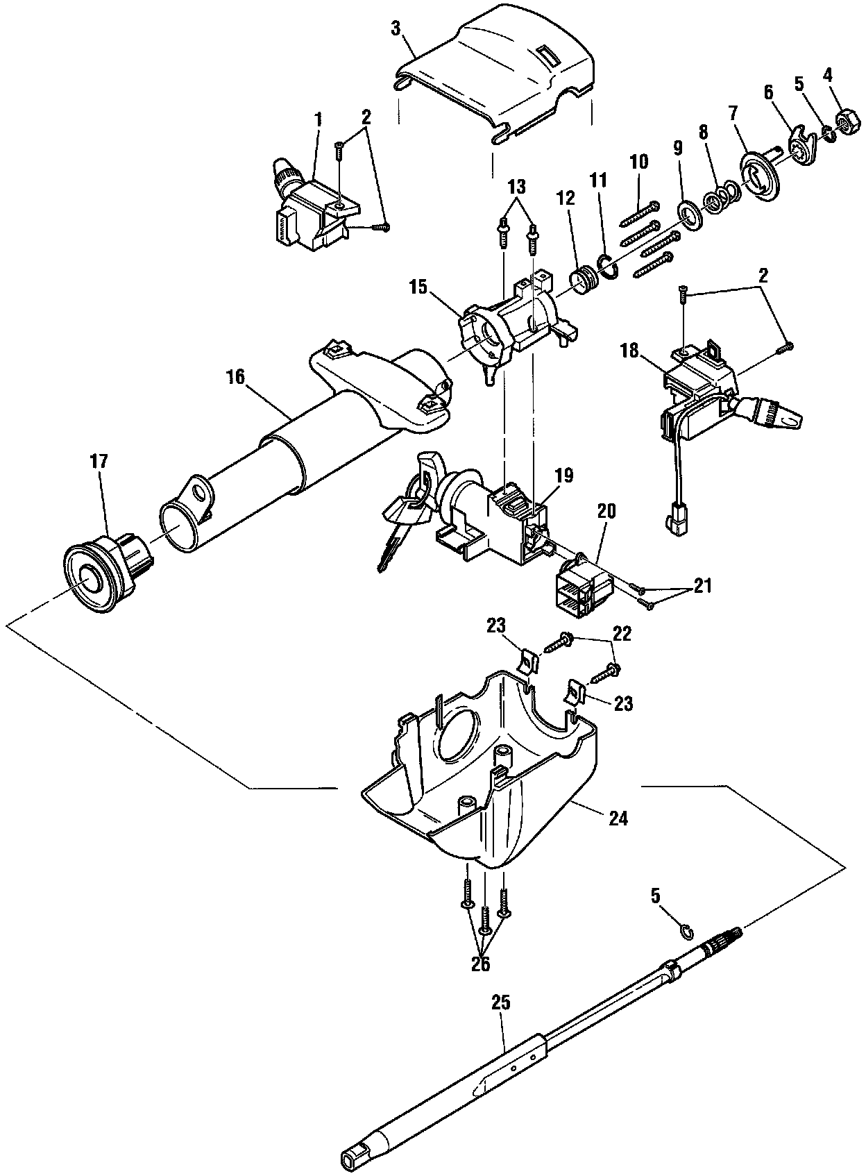 4. Lower steering column cover screws (26) and lower steering column cover (24).