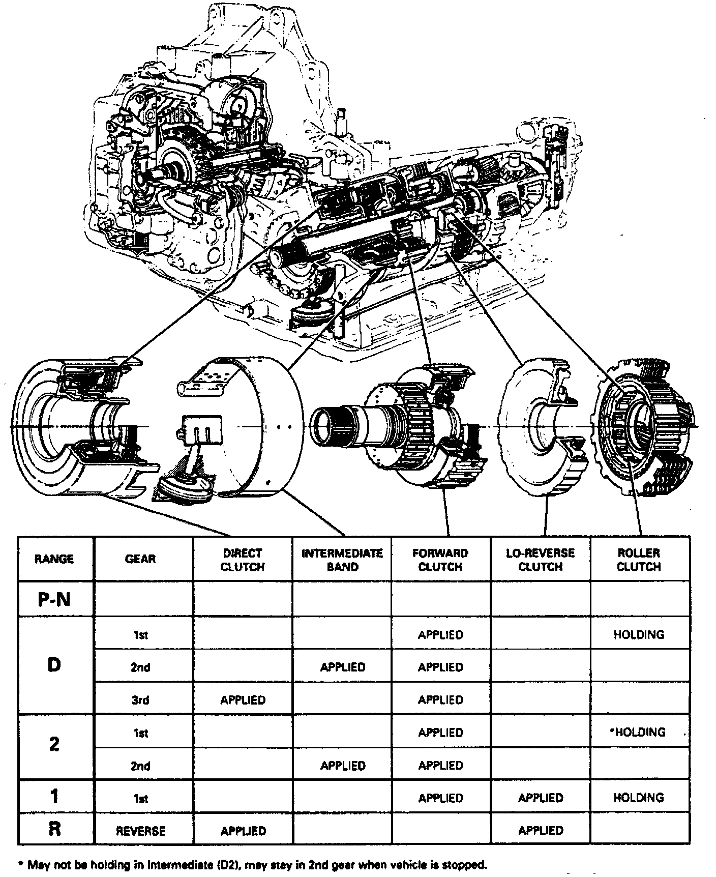 8. With vehicle speed between 25 and 55 mph, release accelerator pedal while moving gear selector to 2nd gear. The TCC should release, transaxle should downshift to 2nd gear immediately and engine should slow down the vehicle.