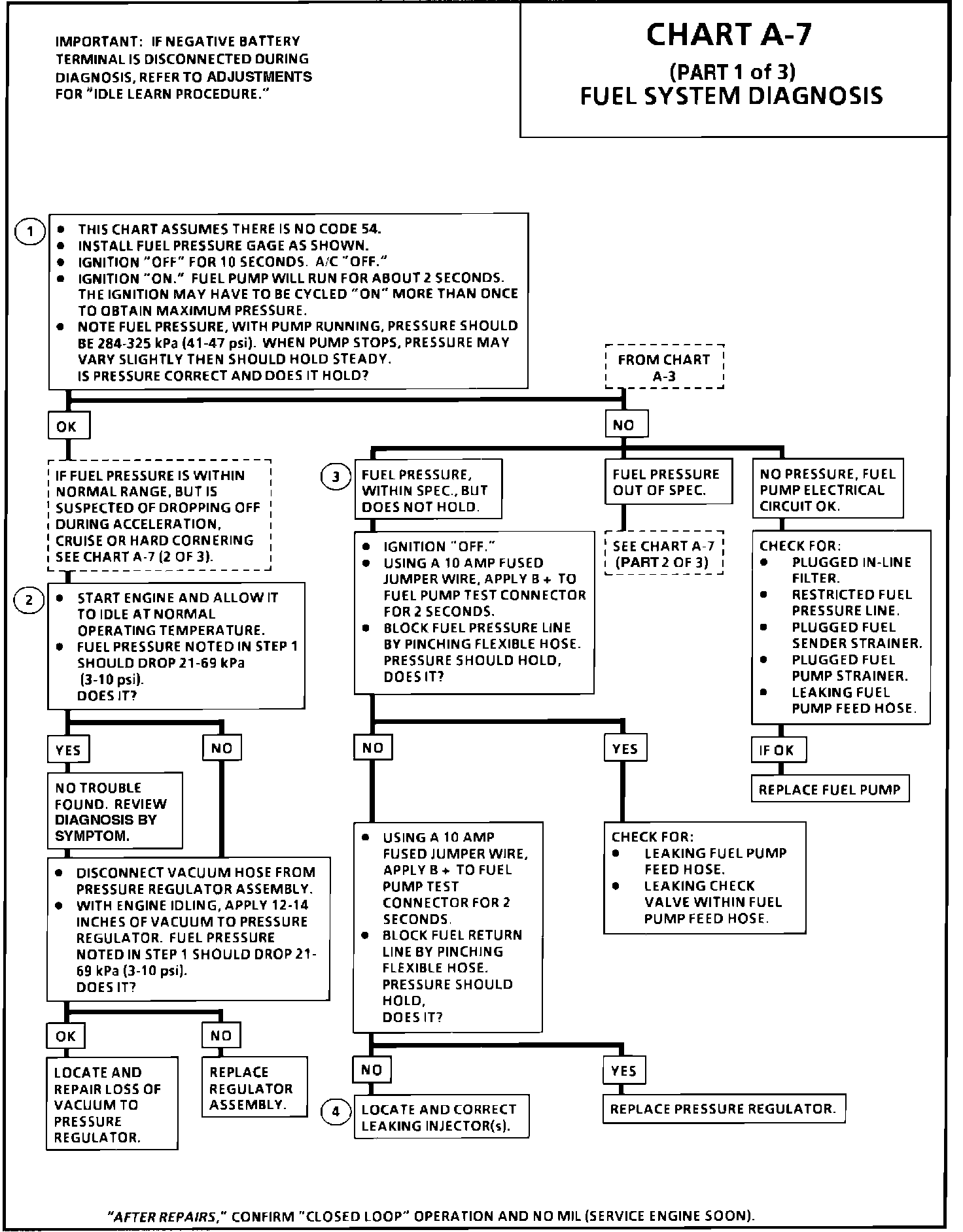 2. When the engine is idling, the manifold pressure is low (high vacuum) and is applied to the fuel regulator diaphragm. This will offset the spring and result in a lower fuel pressure. This idle pressure will vary somewhat depending on barometric pressure, however, the pressure idling should be less indicating pressure regulator control.