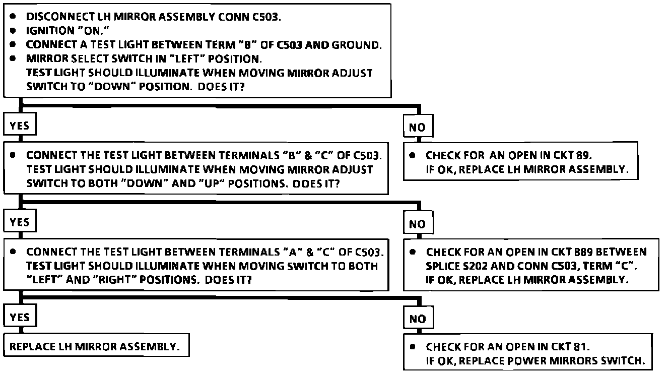 LH Mirror Does Not Adjust In Some Or All Positions:
