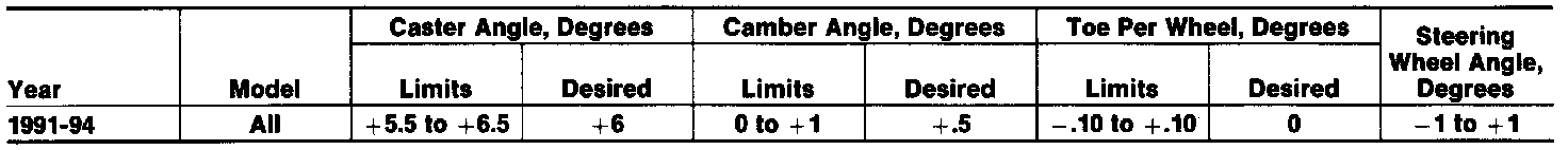 Front Wheel Alignment Specifications: