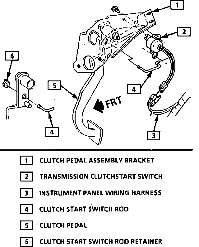5. Remove clutch start switch to pedal bracket retaining screw, then disconnect electrical connector and remove switch.